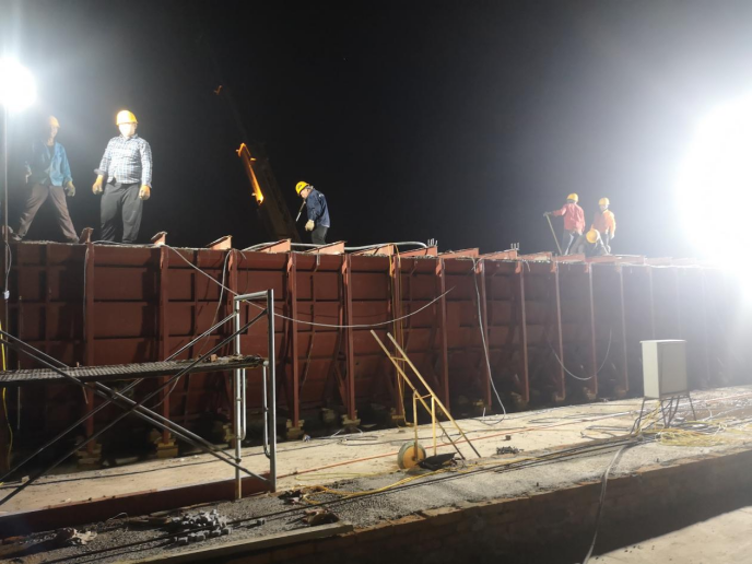 汝陽項(xiàng)目四級(jí)堰夜晚加班澆筑上游鋪蓋
