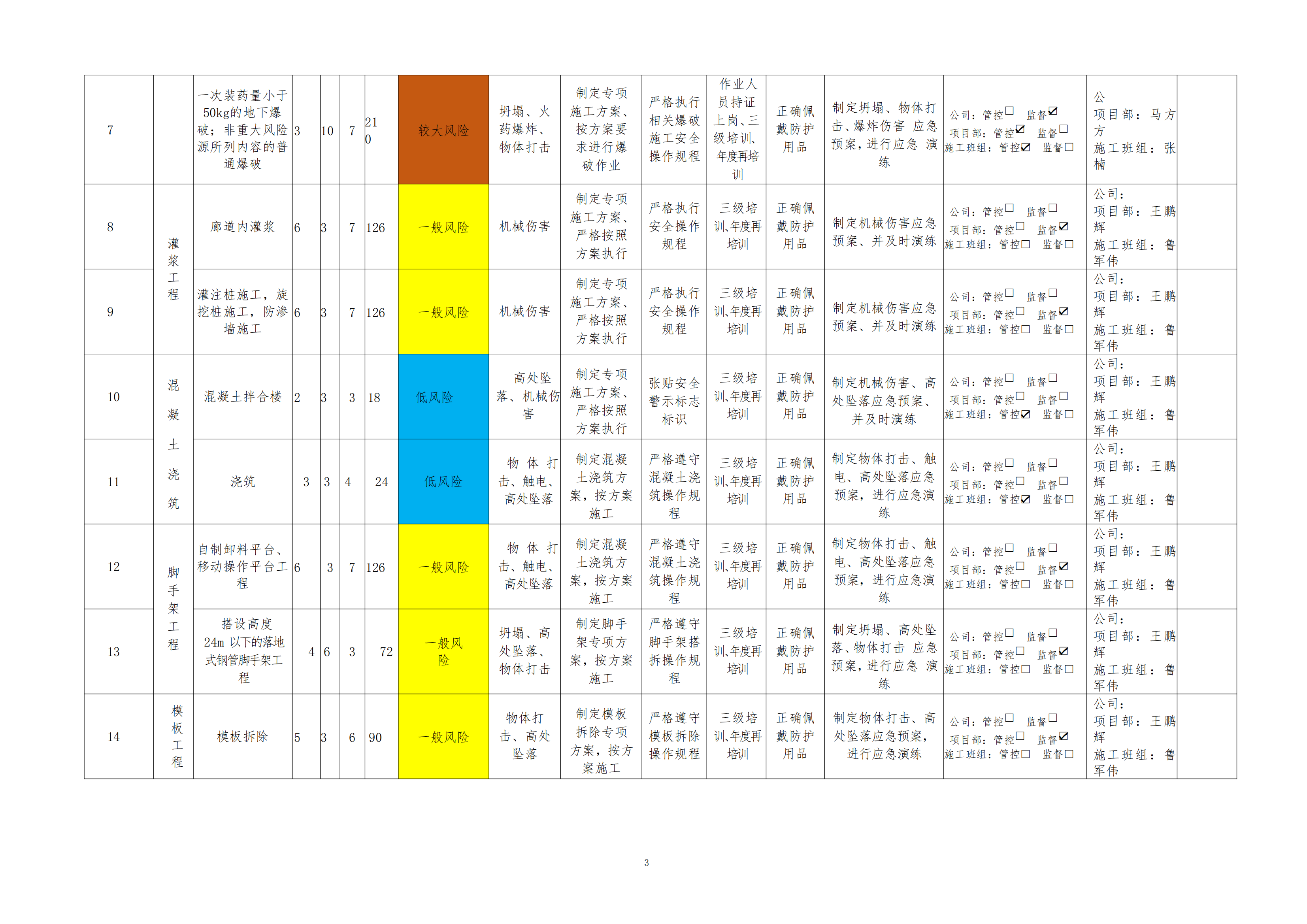 欒川縣新建水庫一期工程施工一標(biāo)段危險源風(fēng)險分級管控清單(10月)