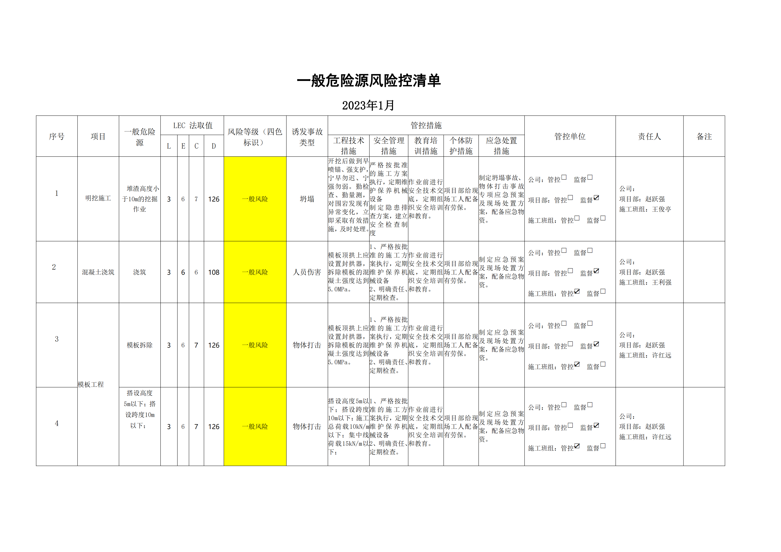 小浪底南岸灌區(qū)7標(biāo)項目危險源風(fēng)險分級管控清單(1月)