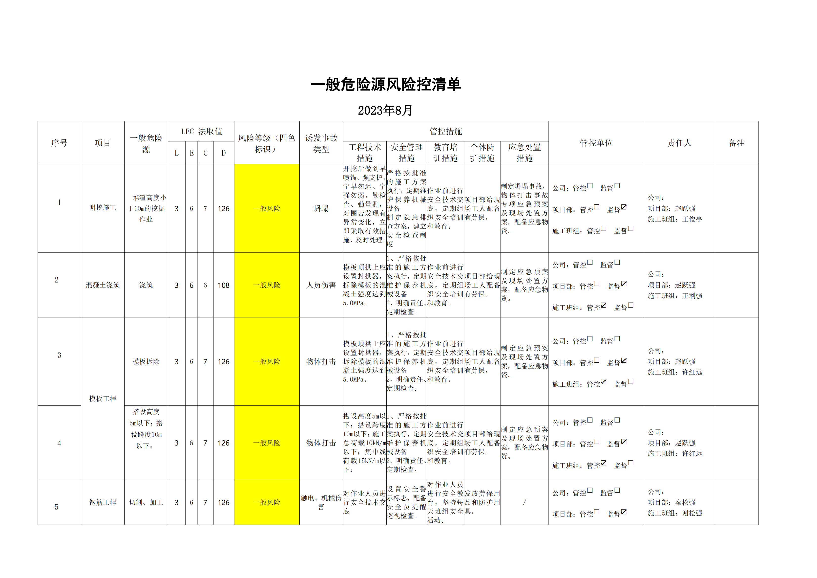 小浪底南岸灌區(qū)7標項目危險源風險分級管控清單(8月)